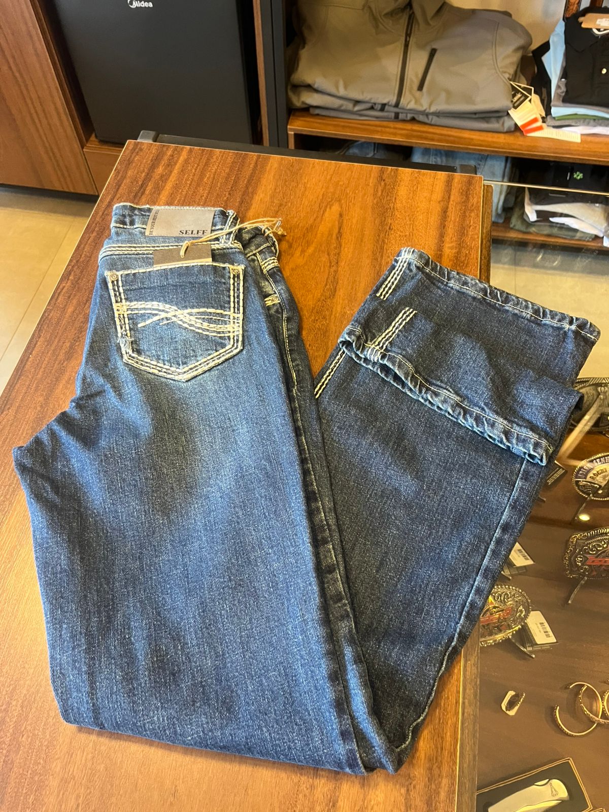 A Calça Jeans Feminina Selff é feita na modelagem Boot Cut e tem a boca levemente mais aberta para se usar com botas. Perfeita para montar, sua principal característica é a cintura no lugar (nem alta, nem baixa). O efeito push-up (levanta o bumbum), juntamente com uso do elastano de alta qualidade, permitem maior conforto no movimento e valorização das formas.
